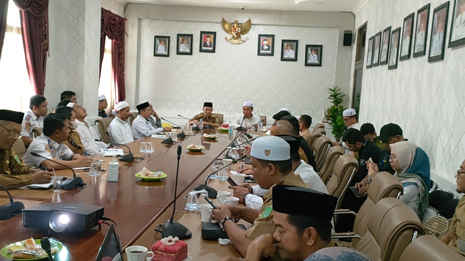 Abah Zairullah ketika memimpin rapat didampingi Sekda Kabupaten Tanah Bumbu dr. Ambo Sakka, dan sejumlah rencana pengurus Masjid Apung, termasuk dari