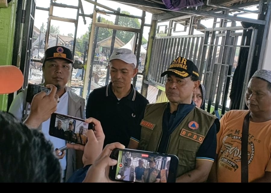 TANAH BUMBU, aktualkalsel.com — Bupati Kabupaten Tanah Abah Zairullah Azhar meninjau korban kebakaran di Jalan Borneo, Gang Mawar RT 19, Kelurahan Tungkaran Pangeran, Kecamatan Simpang Empat, Kabupaten Tanah Bumbu, Jumat ( 28/6/2024 ).