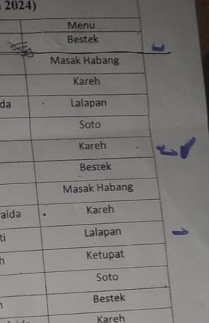 Setidaknya ada enam menu yang sudah dicantumkan bersama tanggal dan hari bukber. Mulai dari menu lalapan, ketupat, kareh, soto dan lainnya. Semua merupakan menu makanan serius. Tidak terdapat bubur yang selama ini mendominasi takjil bukber di masjid masjid pada umumnya.