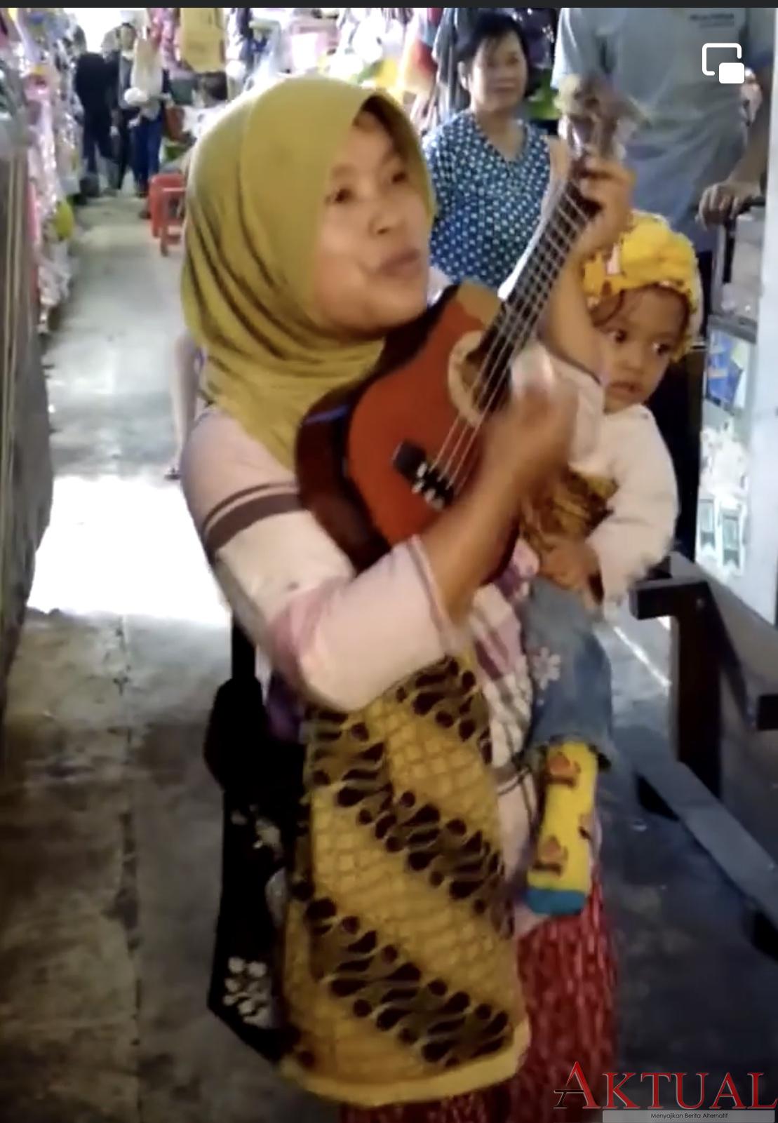 Setiap hari dia performa di kawasan salah satu pasar teramai di kota metro politan itu. Sambil memetik gitar mini ala ukelele, dia mengalunkan lagu ‘cawan madu’ di video yang viral itu.