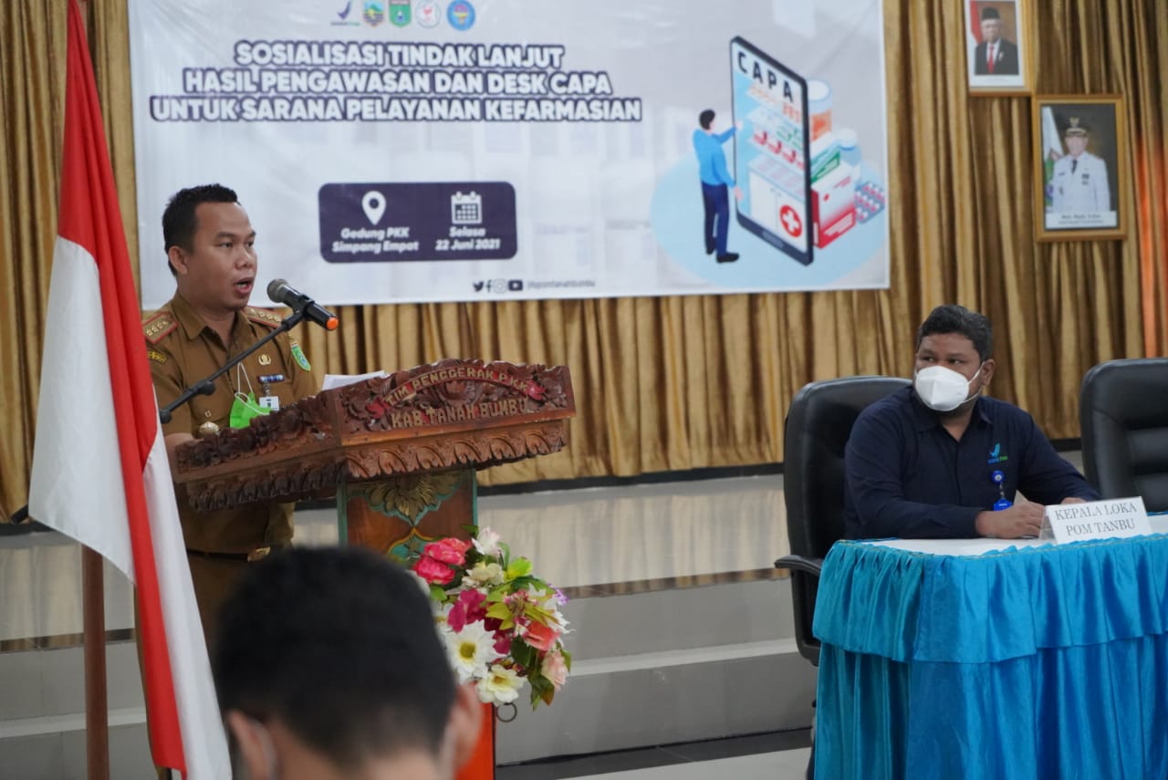bupati menyambut baik dan sangat mengapresiasi dilaksanakanya sosialisasi tindaklanjut hasil pengawasan dan Corrective Action and Preventive Action (CAPA) untuk sarana kefarmasian.