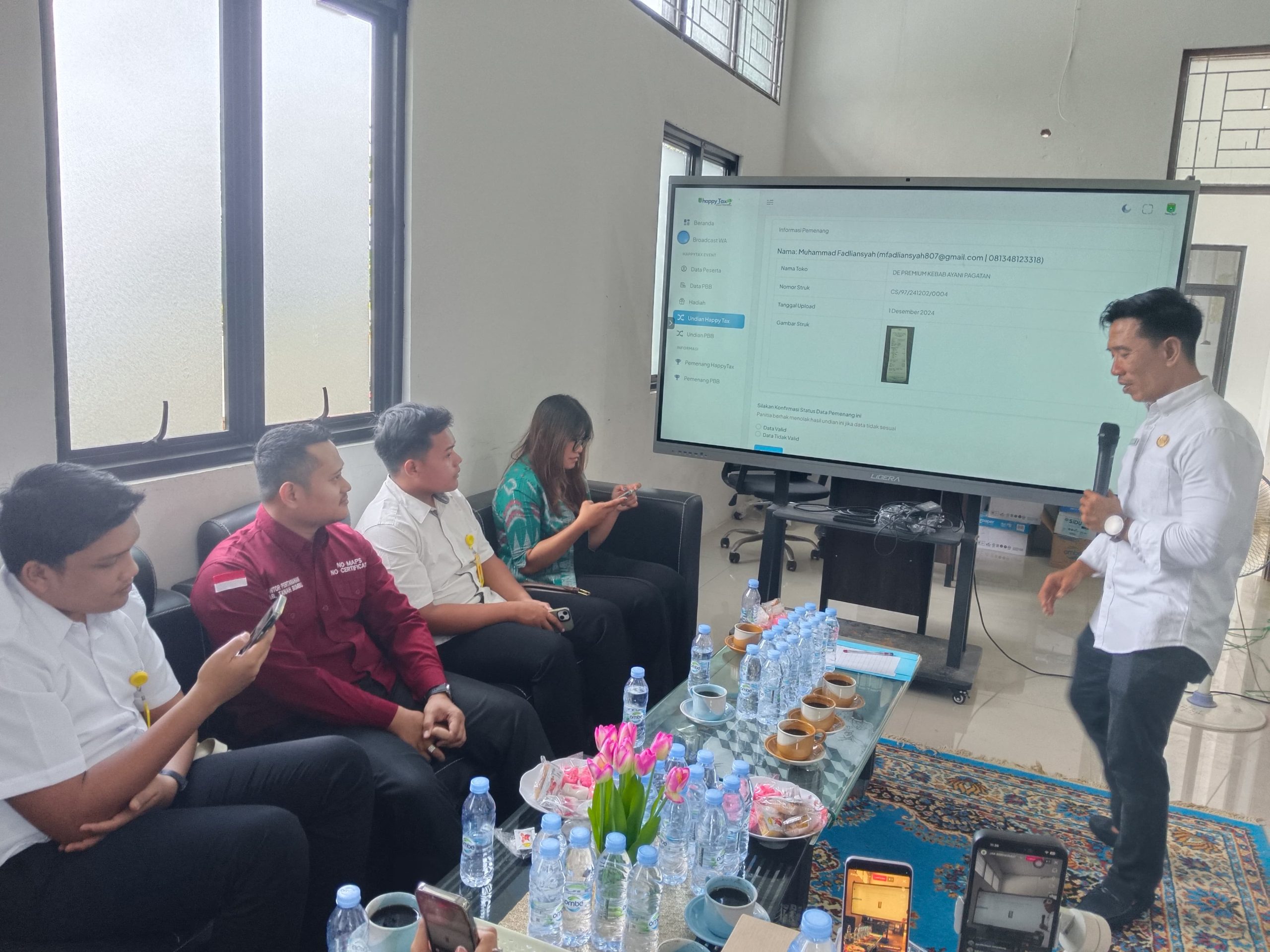 Disaksikan perwakilan dari Diskominfo SP, Kantor Pertanahan, Notaris, Radio Swara Bersujud. Dan juga disiarkan langsung melalui media live instagram @bapenda_kab_tanahbumbu, @pemkab_tanahbumbu, dan @swara.bersujud.