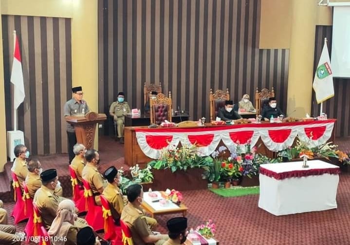 rapat paripurna DPRD Kabupaten Tanah Bumbu dengan agenda penandatanganan Nota Kesepakatan Rencana Pembangunan Jangka Menengah Daerah (RPJMD) Kabupaten Tanah Bumbu tahun 2021-2026, Selasa ( 18/5/2021 ).
