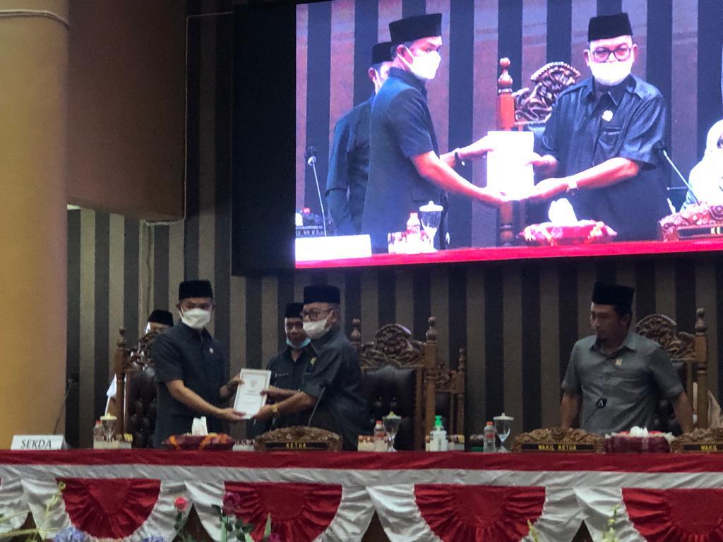 Rapat Paripurna penyampaian Jawaban Bupati Tanbu HM Zairullah Azhar terkait pemandangan umum para fraksi DPRD Kabupaten Tanbu, dipimpin Ketua DPRD H Supiansyah ZA dan Wakio Ketua Said Ismail Kholil Alaydrus.