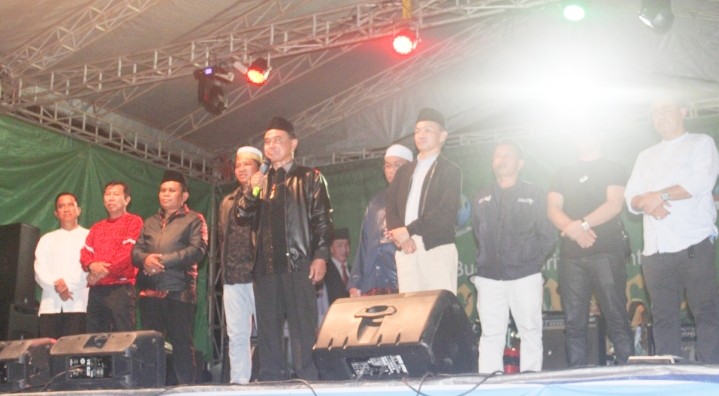 Usai membuka acara hiburan, bupati beserta rombongan beralih ke panggung festival dangdut religi untuk menyaksikan pelaksanaan festival tersebut.