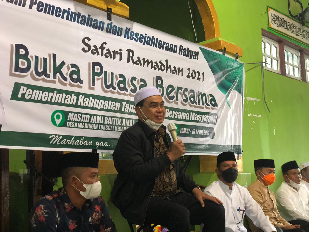 Safari Ramadhan Bupati Tanah Bumbu di Masjid Jami Baitul Amal, Desa Waringin Tunggal, Kecamatan Kuranji, Jumat ( 16/4/2021).