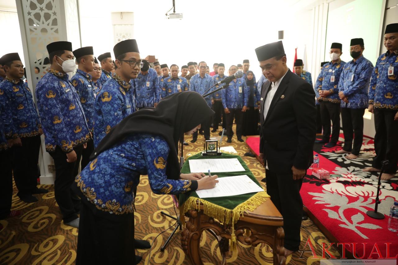 Pengambilan sumpah yang dihadiri Sekda Tanah Bumbu DR. Ambo Sakka, kepala SKPD, kepala bagian, serta tim percepatan berlangsung khidmat dan lancar.