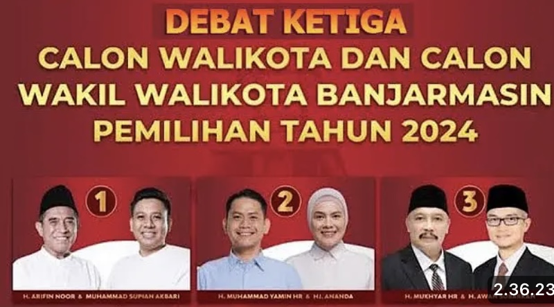 Di debat yang diselenggarakan Komisi Pemilihan Umum (KPU) Banjarmasin ini statemen ketiga paslon didominasi oleh para wakil. .(uumsri/foto net)