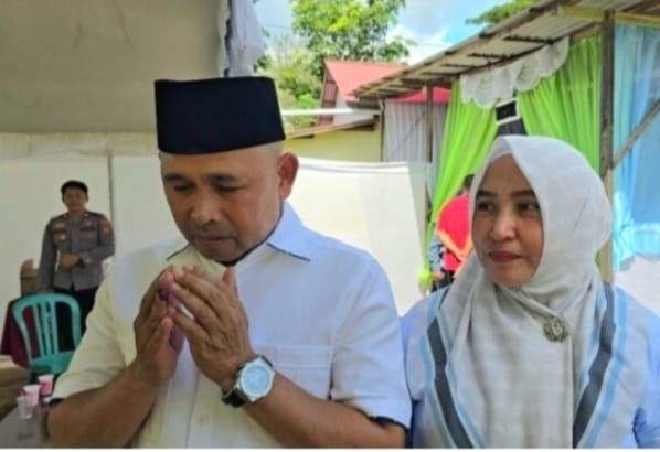 Didampingi istri tercinta, Bahsanuddin hadir mengenakan kemeja putih dan peci hitam, simbol kesederhanaan dan kesiapan melayani masyarakat.