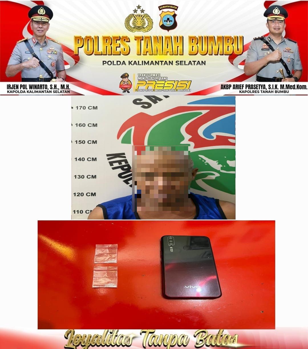 Penangkapan tersebut berawal dari informasi masyarakat terkait maraknya peredaran gelap narkoba di Desa Sejahtera Kec. Simpang Empat Kabupaten Tanah Bumbu.