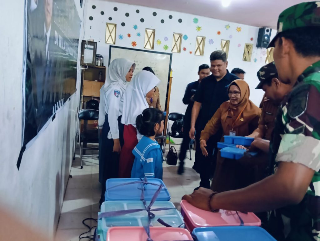 TANAH BUMBU, aktualkalsel.com — Launching Makan Sehat Bergizi bagi siswa-siswi yang ada di Kabupaten Tanah Bumbu dilaksanakan di Sekolah TK, SD, SMP, SMK Bangun Banua, Senin (13/1/2024). Pelaksananya oleh Kodim 1022/Tanah Bumbu.