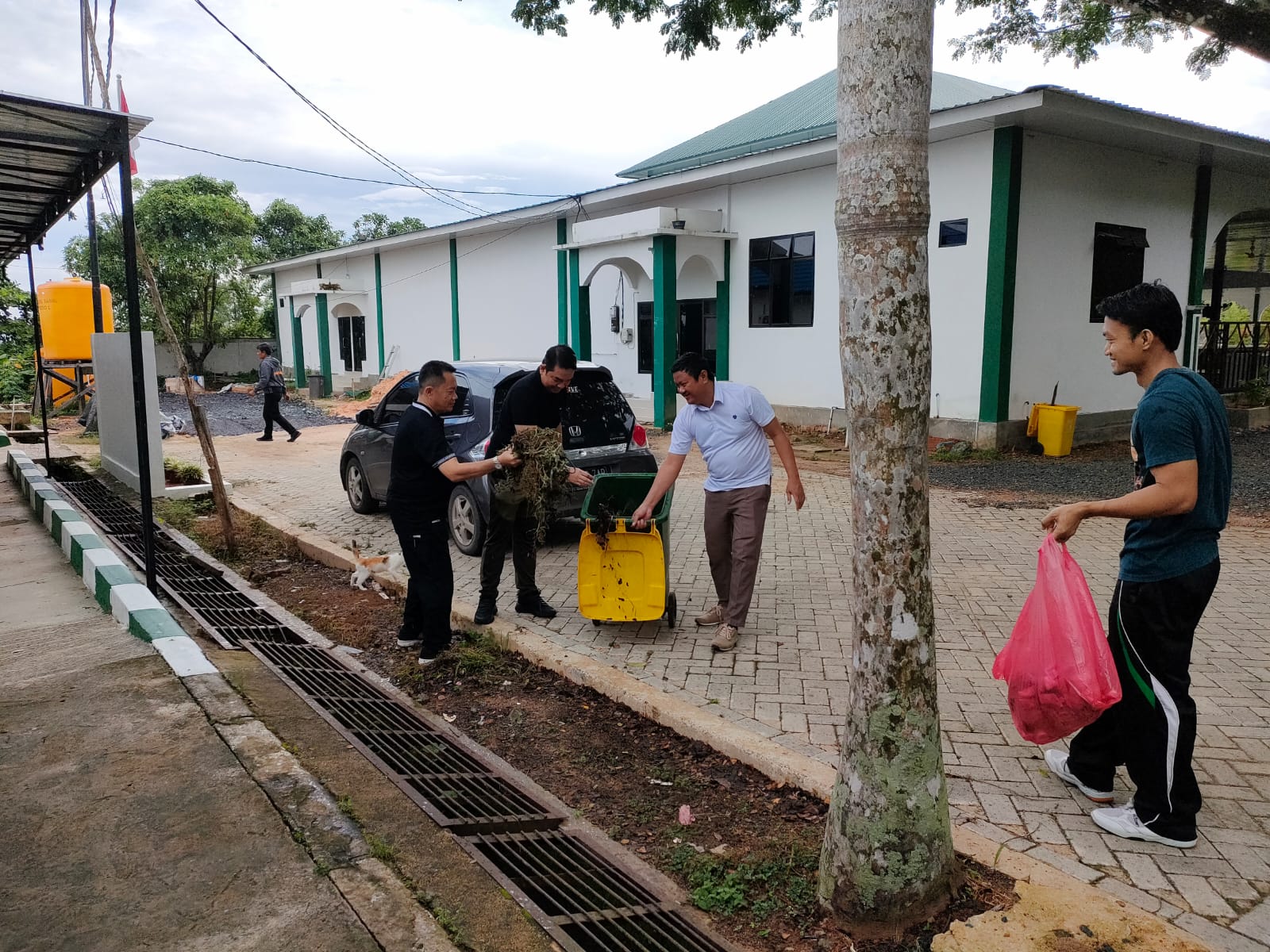 Sekda memimpin aksi bersih-bersih disamping kanan Kanan Kantor Bupati, sementara Eka Saprudin dan Eryanto Rais memunguti sampah di sekitar Pendopo Serambi Madinah.