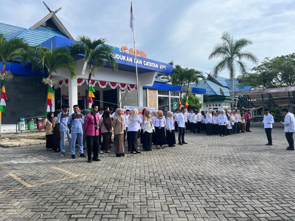 TANAH BUMBU, aktualkalsel.com – Dinas Kependudukan dan Pencatatan Sipil (Disdukcapil) Kabupaten Tanah Bumbu menggelar apel budaya kerja di halaman kantor, Rabu (13/8/2025). Apel dipimpin langsung Kepala Disdukcapil, Gento Hariyadi.