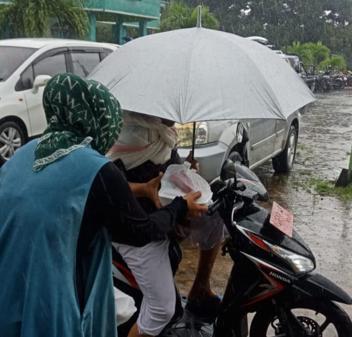 Hari hujan tidak menyurutkan delapan orang pengurus DPC PKB Kotabaru untuk berbagi.