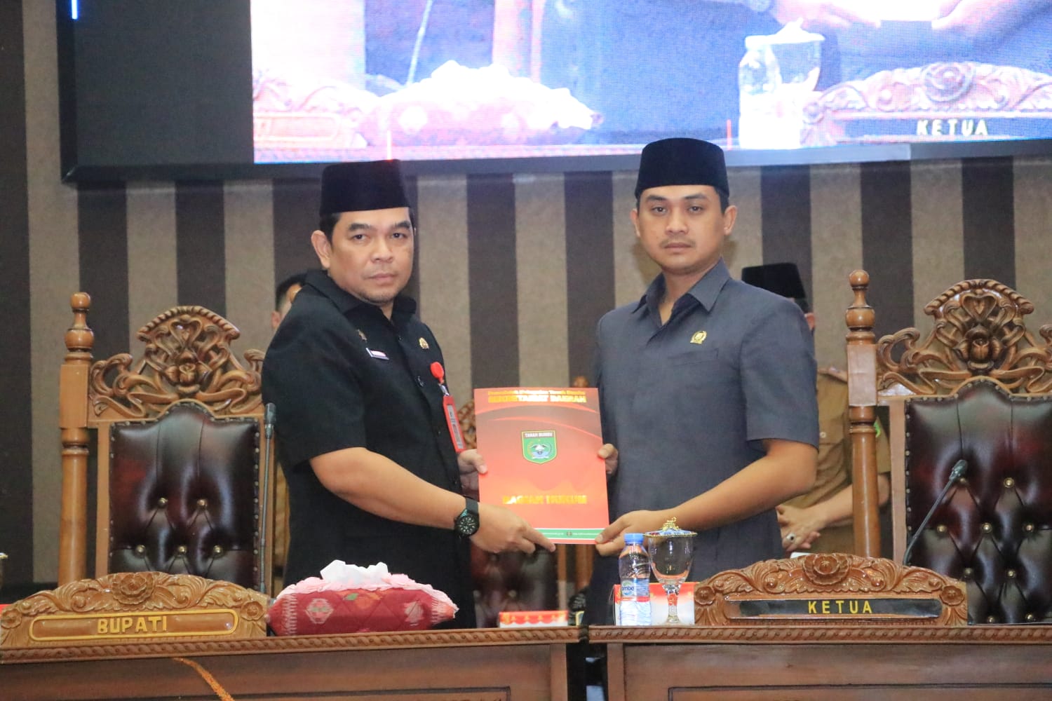 Terkait Raperda yang disampaikan Bupati melalui sambutannya yang dibacakan Asisten bidang Pemerintahan dan Kesra Eka Safruddin mengatakan selaku pihak eksekutif mengucapkan terimakasih dan penghargaan yang tinggi kepada seluruh Pimpinan Dewan, unsur-unsur pimpinan, dan fraksi-fraksi, atas waktu serta kesempatan yang diberikan kepada kami.