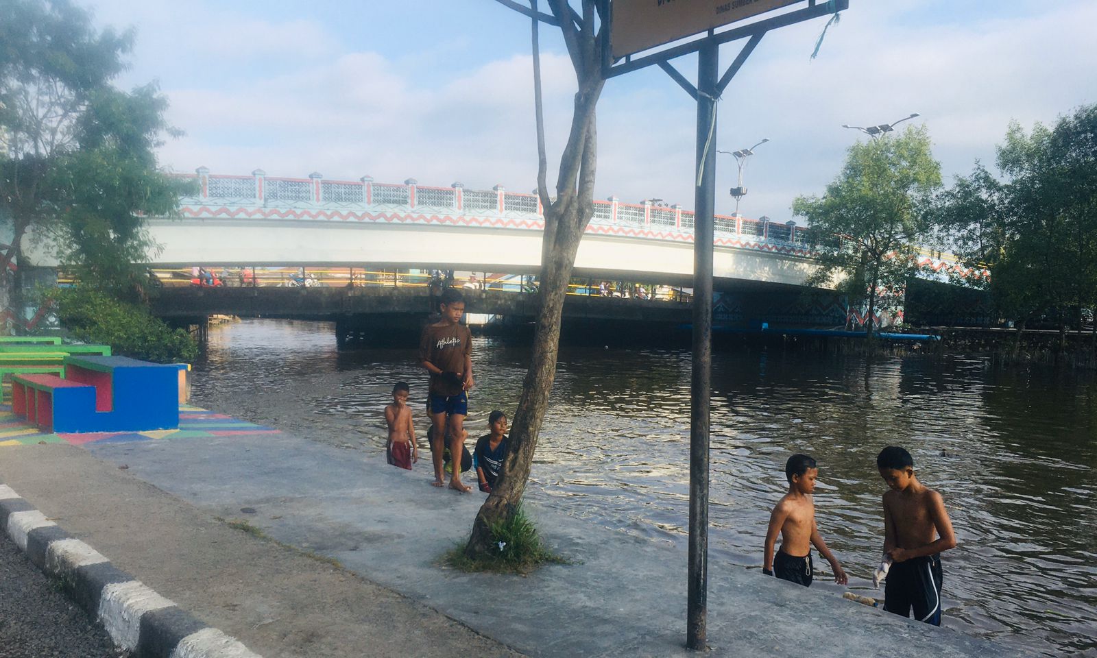 “Untuk main main saja,” ujar mereka ketika ditemui di jalanan Kampung Arab, usai mereka berbasah basah terjun ke sungai dari atap perahu kelotok yang tengah melaju.