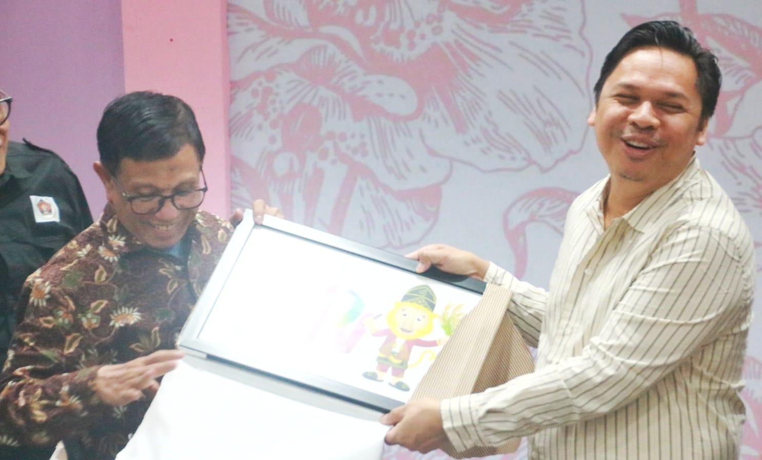 Soft Launching HPN 2025 ditandai dengan penyerahan foto logo dan maskot HPN dari Ketum PWI Hendry CH Bangun kepada Sekdaprov Roy Rizali Anwar.