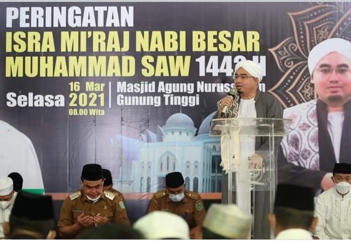 Hal itu diungkapkan Guru Ahmad Zaini ketika memberikan tausiyah pada peringatan Isra Miraj Nabi Muhammad SAW di yang digelar Pemkab Tanah Bumbu, Selasa (16/3/21) di Masjid Agung Nurussalam Batulicin.