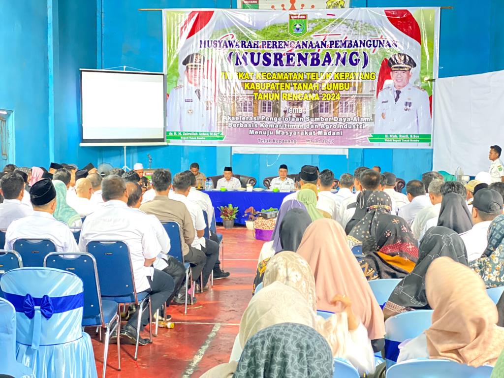 Dalam Musrenbang Rencana Kerja Perangkat Daerah ( RKPD ) tingkat Kecamatan Teluk Kepayang untuk tahun rencana 2024 ini, Bupati Zairullah hadir ditemani Sekretaris Daerah DR. Ambo Sakka dan kepala SKPD serta jajarannya berserta Kepala Desa Kecamatan Teluk Kepayang sebagai peserta musyawarah.