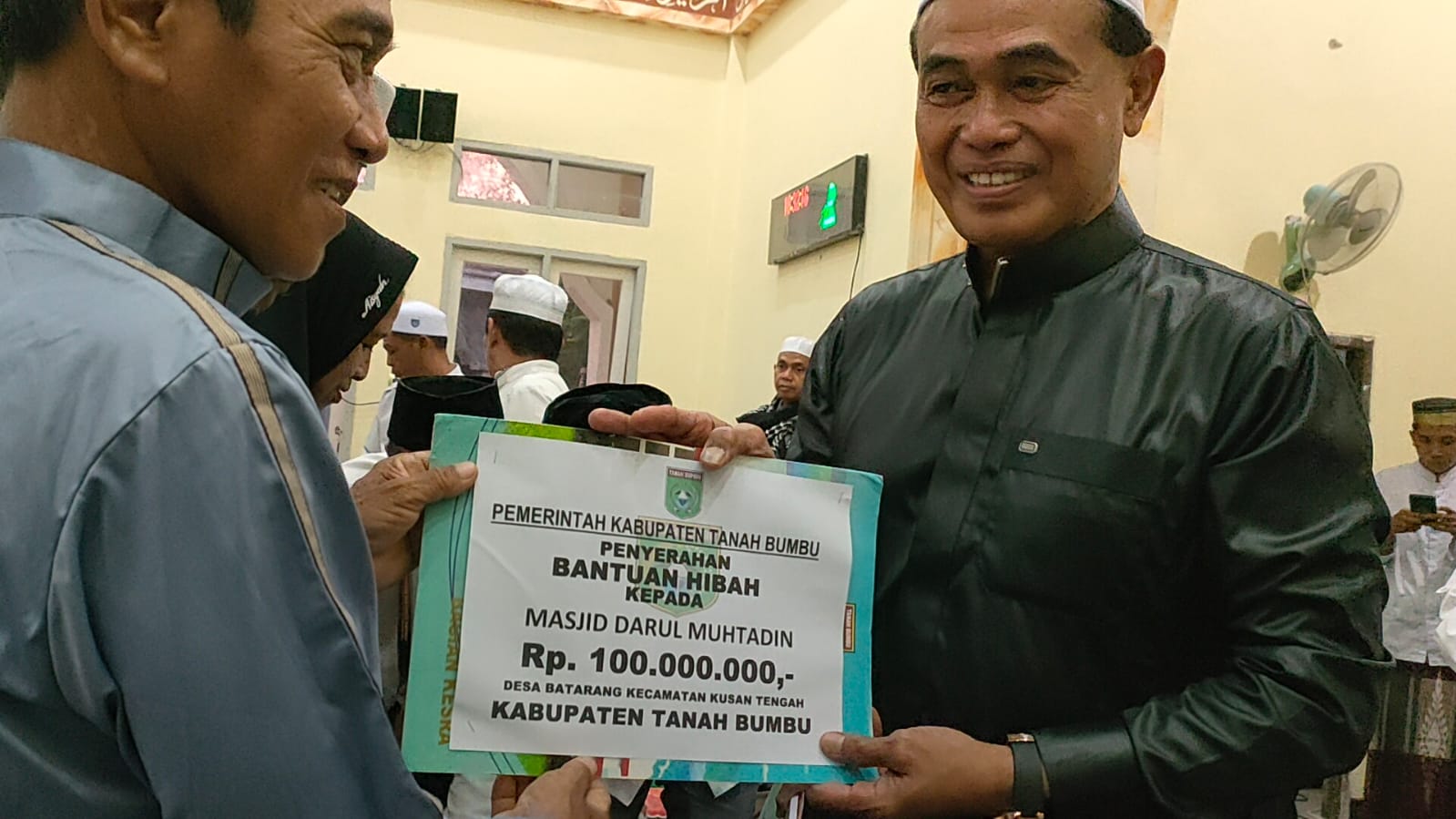 Setelah dilakukan ” ritual cuci kaki ibu “, acara kemudian Safari Ramadhan dilanjutkan dengan penyerahan bantuan SDSM dan sosial berupa penyerahan hibah kepada Masjid Darul Muhtadin sebesar Rp 100 Juta.