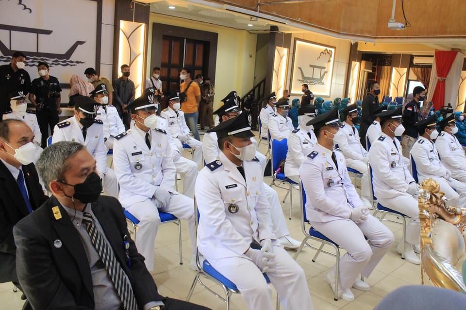 BANJARMASIN aktualkalsel.com—Walikota Banjarmasin H Ibnu Sina melantik dua camat baru dan 20 lurah di Kota Banjarmasin Selasa 5 Oktober 2021 di aula Kayuh Baimbai Balaikota. Acara dilanjutkan dengan pelantikan para ketua PKK masing masing oleh dr Wasliah Ibnu Sina selaku ketua PKK Kota Banjarmasin.