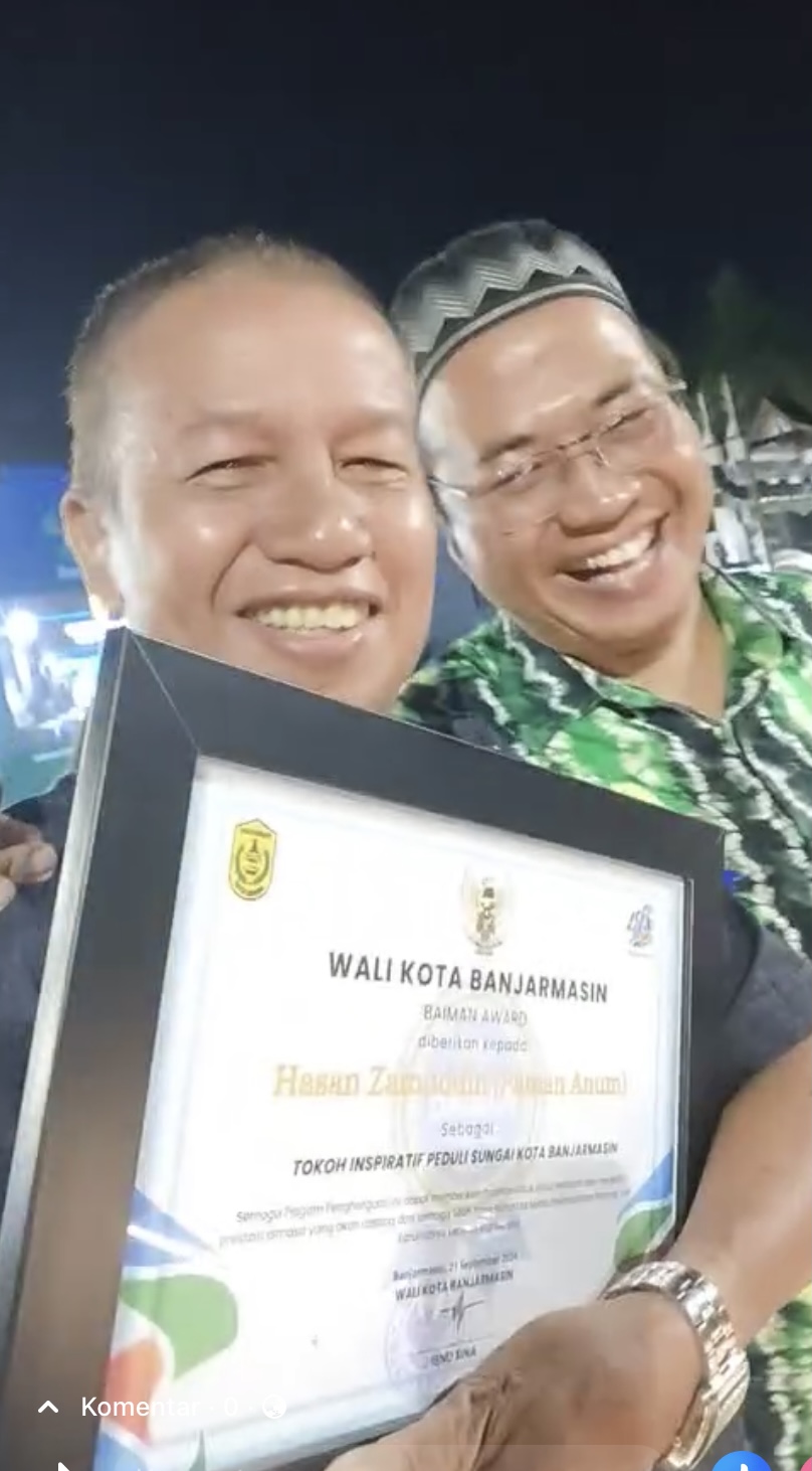 BANJARMASIN aktualkalsel.com–Dia baru saja menerima penghargaan sebagai Tokoh Inspiratif Peduli Sungai Banjarmasin oleh walikota Ibnu Sina pada puncak gelar budaya Hari Jadi ke 489 Banjarmasin Sabtu 21 September 2024.