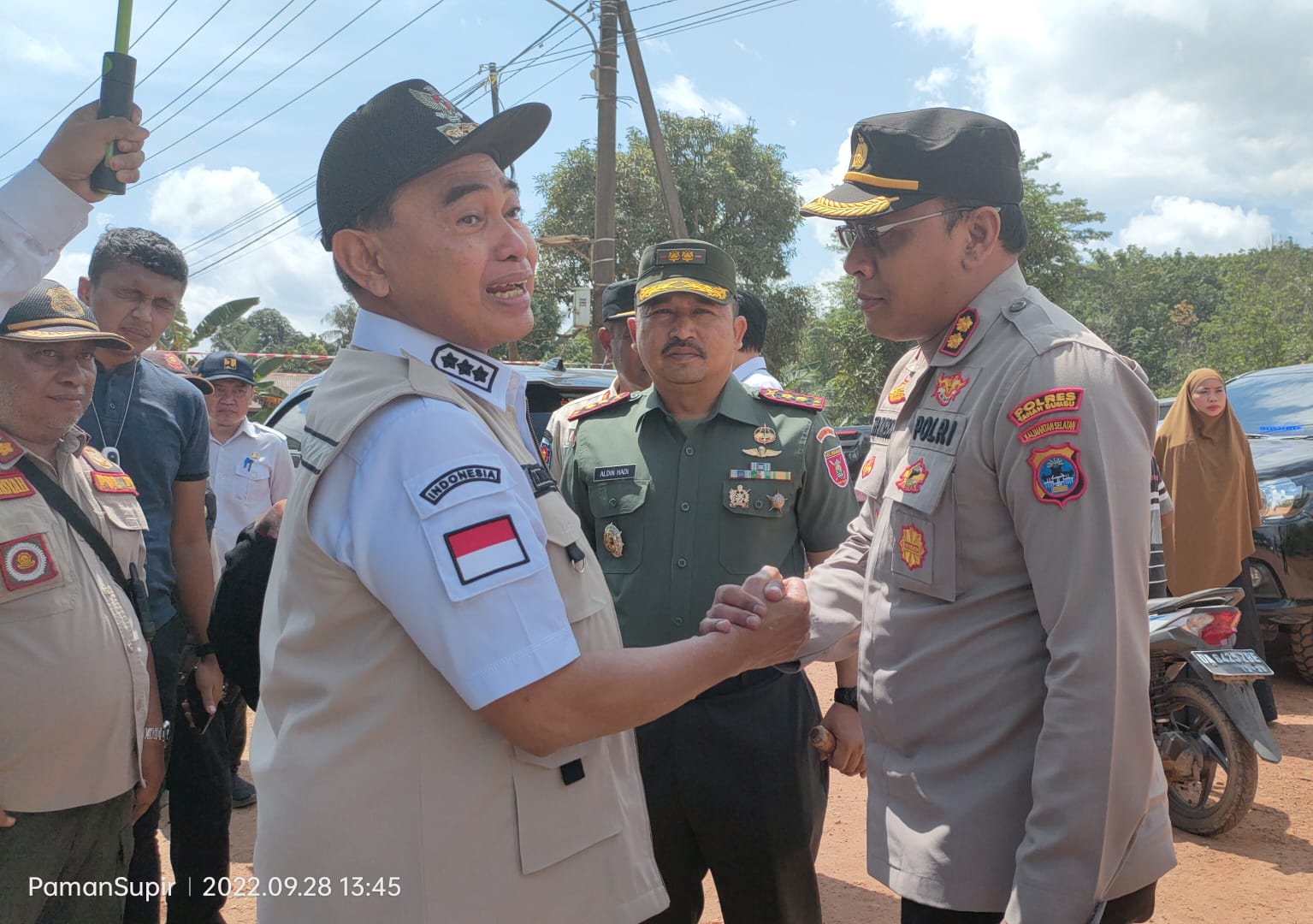 Selain Bupati Zairullah, Kapolres Tanah Bumbu AKBP Tri Hambodo, dan Dandim 1022/ Tanah Bumbu Letkol.Inf Aldin Hadi juga melakukan peninjauan terhadap jalan yang longsor.