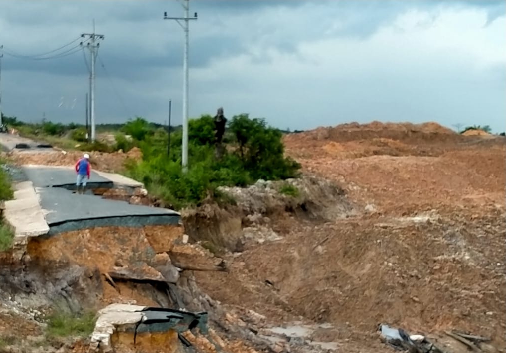 TANAH BUMBU, aktualkalsel.com — Kadis PUPR Tanah Bumbu Subhansyah, ST, MT, gerak cepat menanggapi keluhan warga Desa Bunati Kecamatan Angsana. Didampingi sejumlah wartawan media cetak, televisi dan online dia turun langsung memeriksa jalan desa yang longsor akibat tambang batubara, Minggu (23/5) tadi.