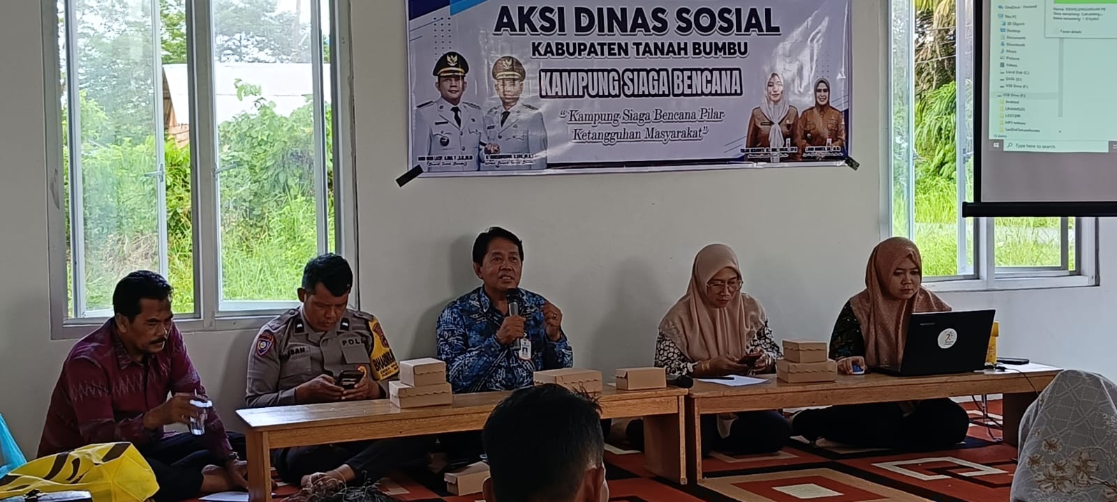 Bupati Tanah Bumbu Andi Rudi Latif melalui Kepala Dinas Sosial disampaikan oleh Kepala Bidang Perlindungan dan Jaminan Sosial, Muhammad Supian memaparkan bahwa Sosialisasi Kampung Siaga Bencana (KSB) adalah wadah penanggulangan bencana berbasis masyarakat yang dijadikan kawasan/tempat untuk program penanggulangan bencana.