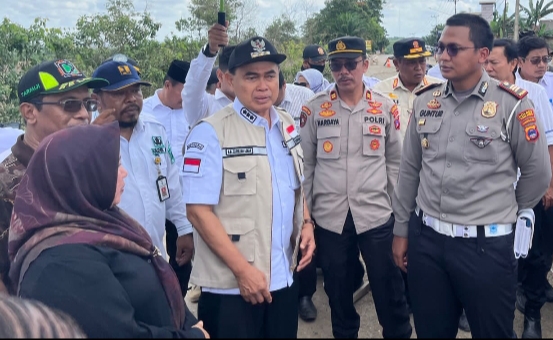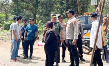 TANAH BUMBU, aktualkalsel.com, — Kapolres Tanah Bumbu AKBP Tri Hambodo melakukan peninjauan ke lokasi jalan yang longsor
