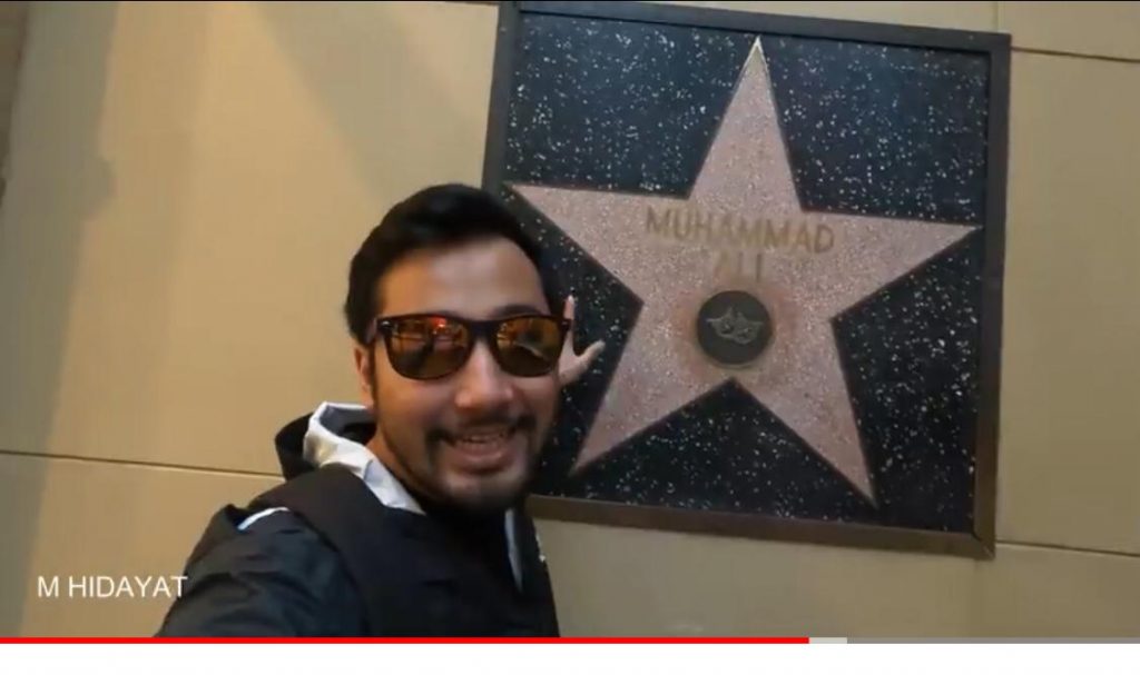 Menariknya , ada satu bintang yang ‘tercecer’ dari ‘gugusannya’. Potongan marmer berpahat bintang itu tidak ditempel di trotoar melainkan di dinding khusus, kawasan itu, tertulis nama Muhammad Ali. Petinju legend yang kini masih hidup.