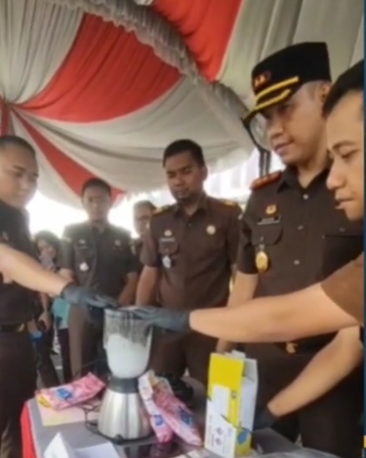 Pemusnahan tersebut dimulai dengan memblender sejumlah paket sabu, dilanjutkan dengan membakar barang bukti berupa yang dibakar ke dalam drum yang sudah dipotong.
