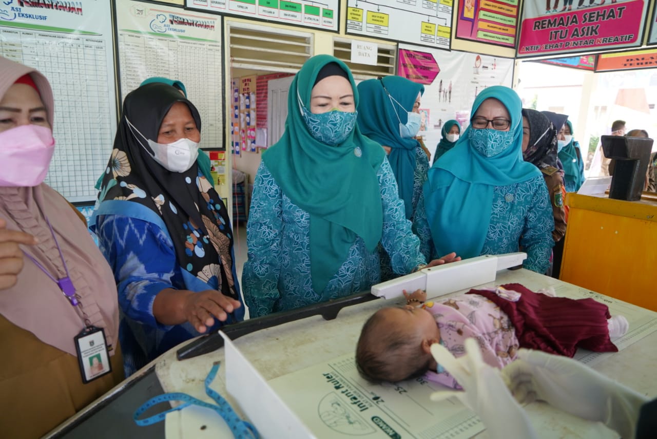 Dalam kesempatan kunjungan ke Posyandu Widuri, Ketua TP PKK Tanbu terus mengingatkan masyarakat agar disiplin menerapkan protokol kesehatan Covid-19.