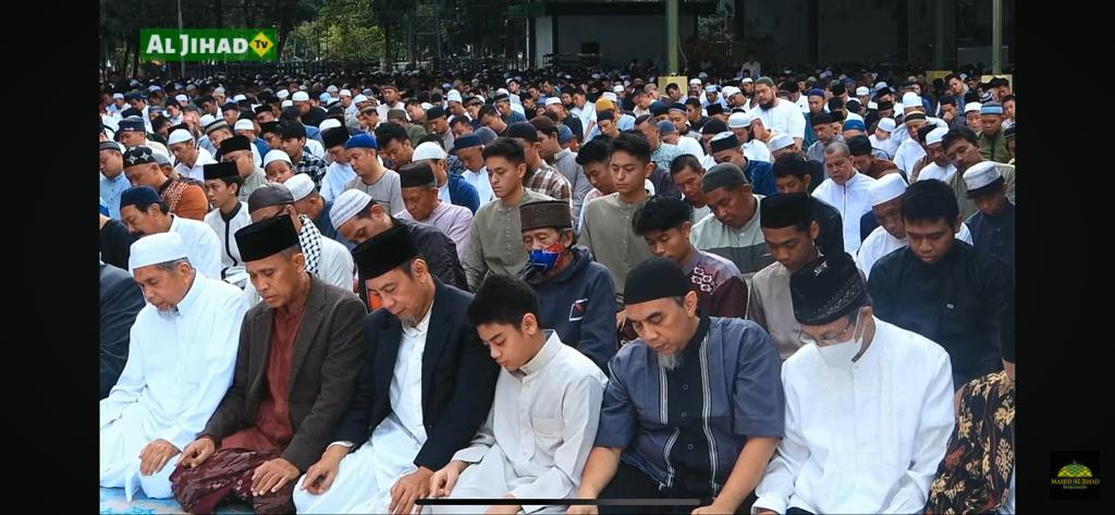 BANJARMASIN aktualkalsel.com–Ribuan jamaah melaksanakan Sholat Idulfitri 1445 H yang bertepatan dengan Rabu 10 April 2024 di Masjid Al Jihad Banjarmasin Tengah. Bebeda dengan tahun tahun sebelumnya dilaksanakan di bagian utara Lapangan Kamboja, tahun ini mereka menenuhi halaman masjid tersebut untuk jamaah pria sedangkan jamaah perempuan di lantai 2 sampai lantai 3 masjid tersebut.