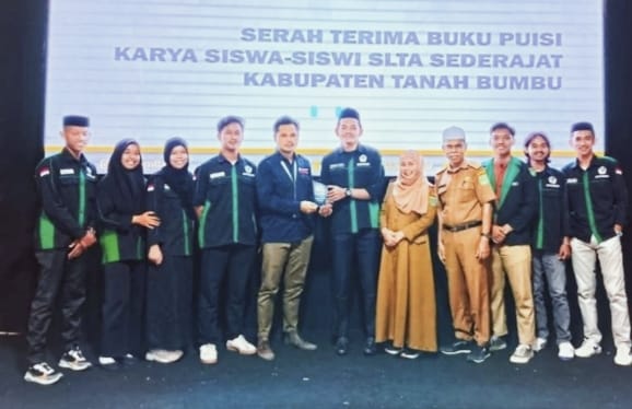 TANAH BUMBU, aktualkalsel.com — Organisasi Kerukunan Pelajar Mahasiswa Tanah Bumbu Kalimantan Selatan Makassar (KPMTBKSM) menyerahkan hadiah dan cinderamata kepada tiga pelajar Tanah Bumbu yang juara pada lomba puisi, sekaligus penyerahan cinderamata kepada Dinas Perpustakaan dan Kearsipan dan Radio Swara Bersujud (RSB) Tanah Bumbu.