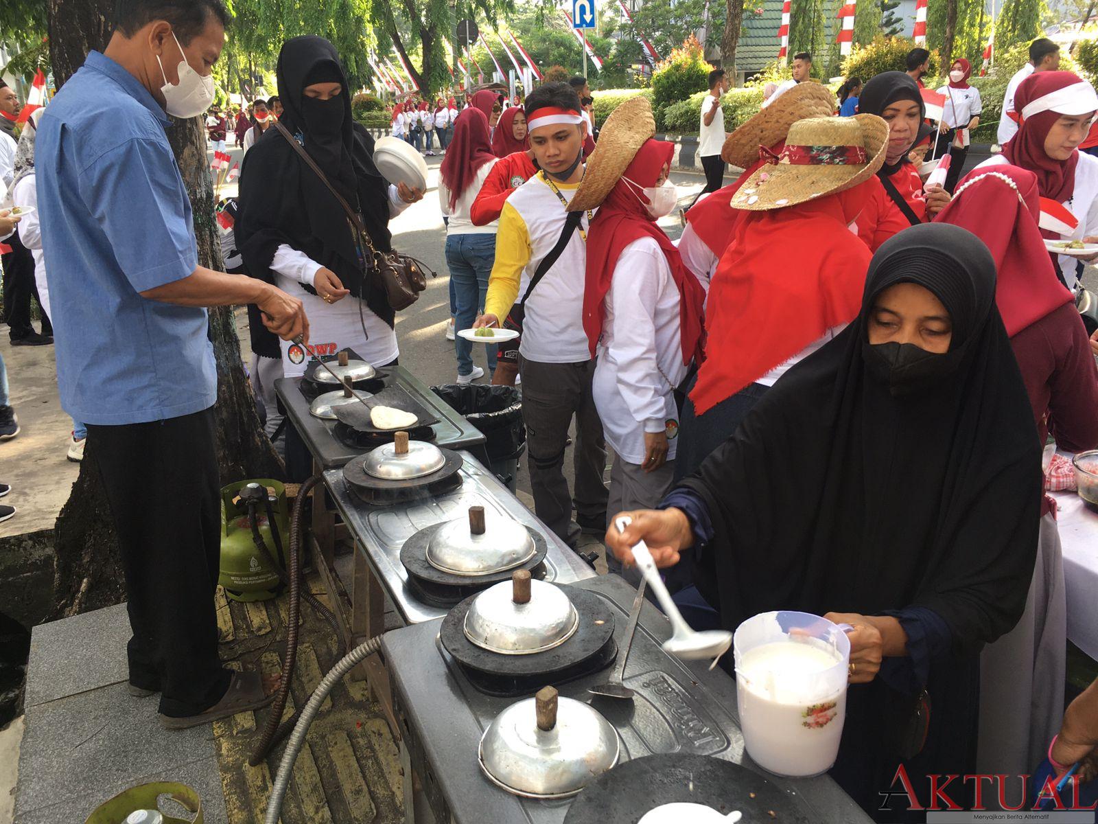“Silakan penuhi piring piring kalian, tapi kami tidak menyediakan plastik untuk dibawa pulang,” ujar petugas yang menjaga stan.(uumsri)