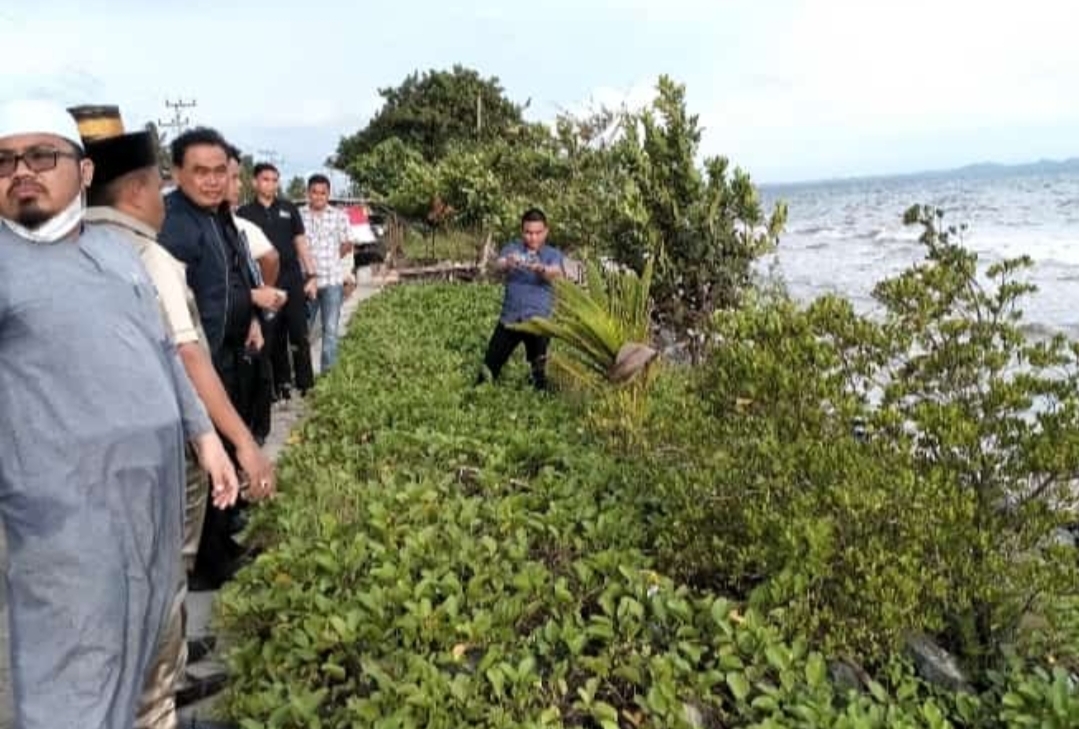 Zairullah meninjau lokasi rencana pembangunan masjid terapung — dipinggir laut Pagatan — setelah melakukan kunjungan ke salah satu keluarga di Desa Pulau Salak.