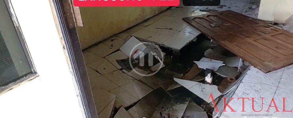 Bagian yang mengalami amblas itu cukup luas mulai masuk pintu depan sampai menuju ruang tengah. Selain lantainya mengalami penurunan daun pintu depan juga ikut terlepas.