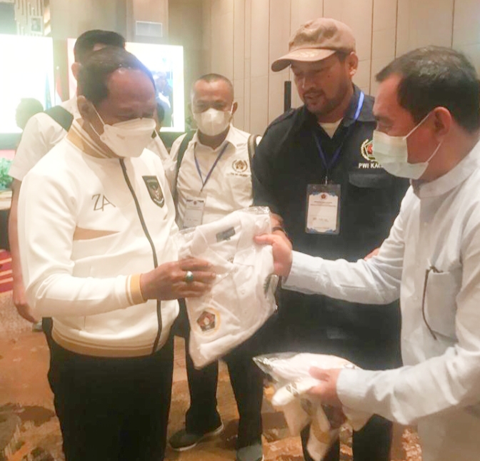 Dalam kesempatan itu, Zainal Helmie juga menyerahkan cinderamata kepada Menpora berupa kaos yang merupakan simbolis dukungan dari Pemprov Kalsel, Dispora Kalsel, Hasnur Grup, PT Adaro, PT Arutmin.