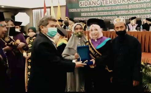 Pada acara tersebut hadir Zairullah Azhar, pembina STIENAS Banjarmasin Wahyu Windarti Zairullah, orang tua dan wali mahasiswa. Dan tentu wisuda kali ini tetap memperhatikan protokol kesehatan di masa Covid-19. SKR/Edwan
