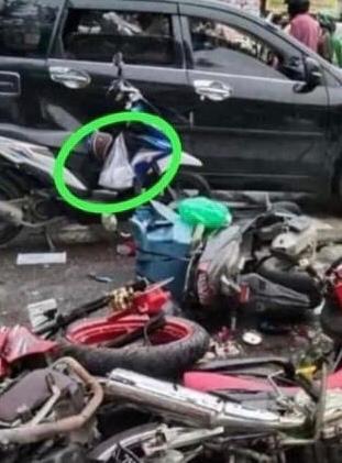 Di postingan itu, Wisnu memposting foto dimana terlihat kendaraan Siti dan Bowo diparkir masih utuh sementara banyak lainnya yang ringsek. Di bagian kantong kresek masih utuh tergantung itu ditandai dengan lingkaran warna hijau.
