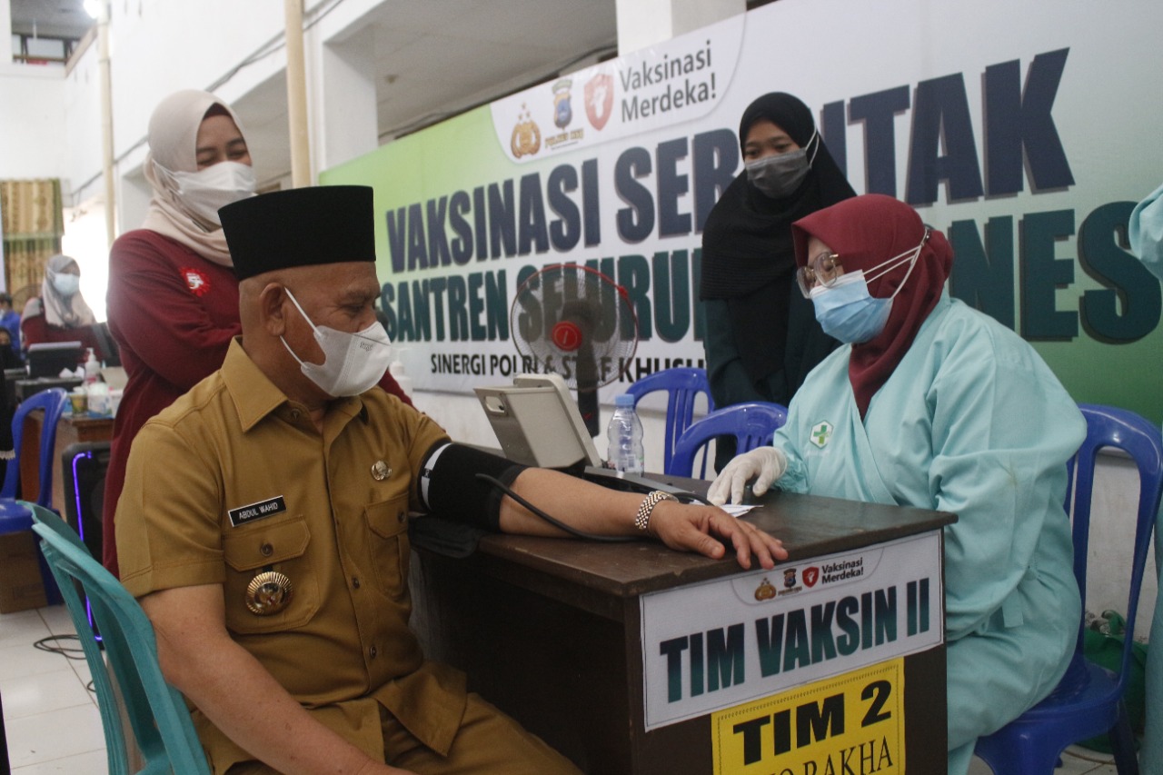 Hal itu disampaikan Bupati HSU. Abdul Wahid HK beserja unsur jajaran Forkopimda saat meninjau langsung program vaksinasi Covid-19 serentak di Tempat Ibadah dan Pondok Pesantren se-Indonesia , di Ponpes Rasyidiyiah Khalidiyah, Selasa (7/9/2021).