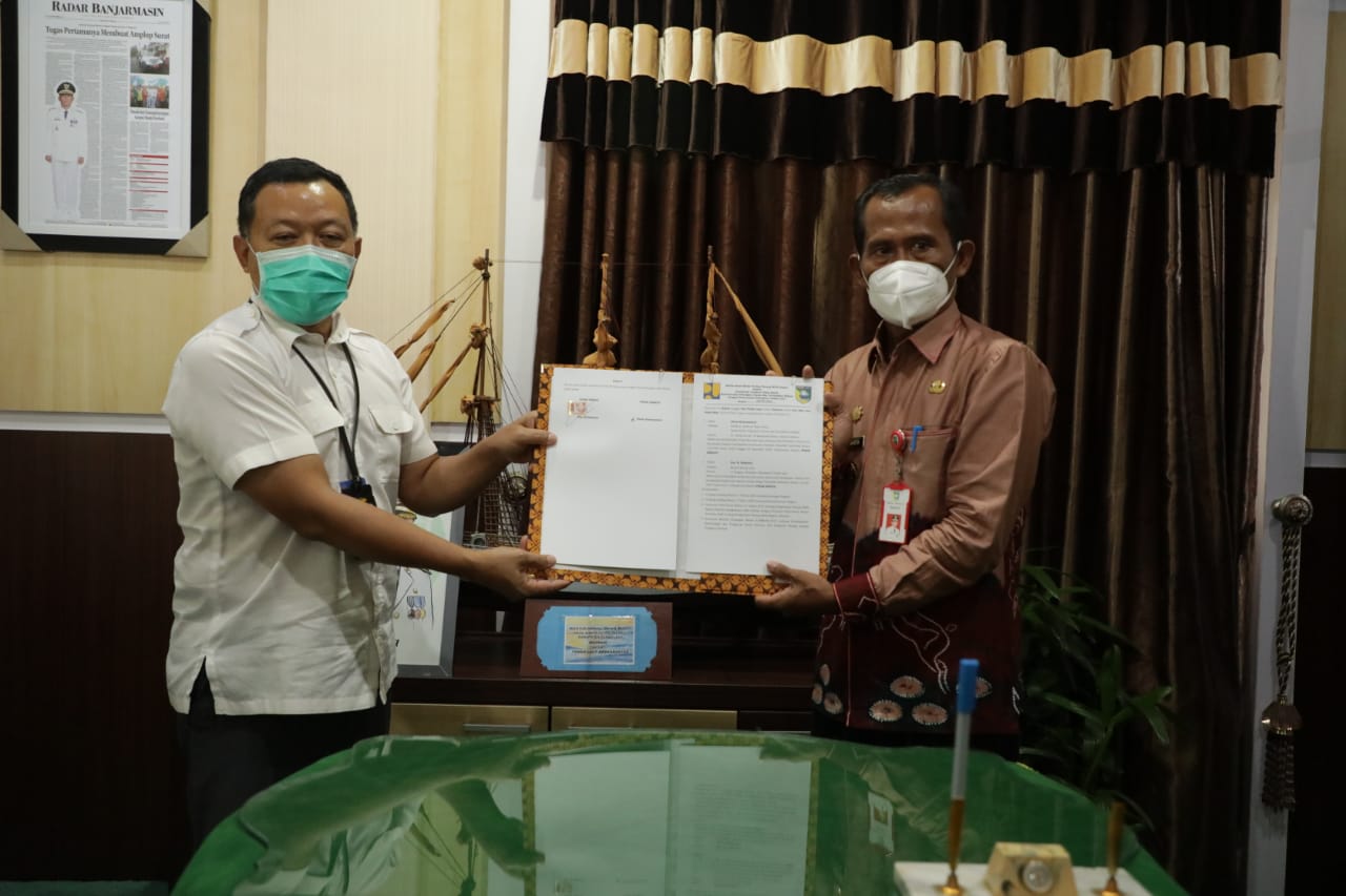 PELEIHARI, aktualkalsel.com — Pemerintah Kabupaten Tanah Laut menerima hibah infrastruktur perpipaan air bersih dari Direktorat Jenderal (Dirjen) Cipta Karya Kementerian Pekerjaan Umum dan Perumahan Rakyat (PUPR) Republik Indonesia. Penandatanganan serah terima dilakukan oleh Bupati Tanah Laut (Tala) Sukamta dengan Kementerian PUPR yang diwakili oleh Kepala Balai Prasarana Permukiman Wilayah Kalimantan Selatan Dardjat Widjunarso, bertempat di Ruang Kerja Bupati, Kamis (25/2/2021).