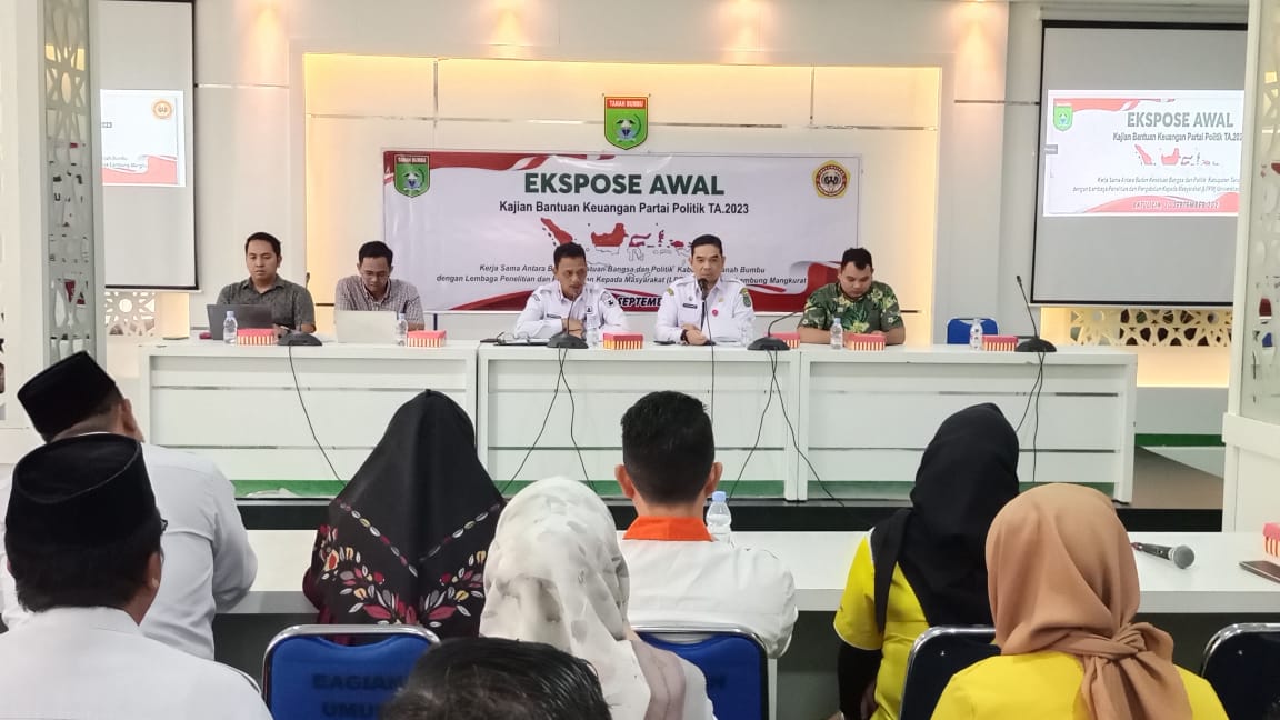 Sementara itu, Asisten Bidang Pemerintahan dan Kesra Kabupaten Tanah Bumbu H. Eka Safrudin mengapresiasi kegiatan expose awal kajian bantuan keuangan parpol.