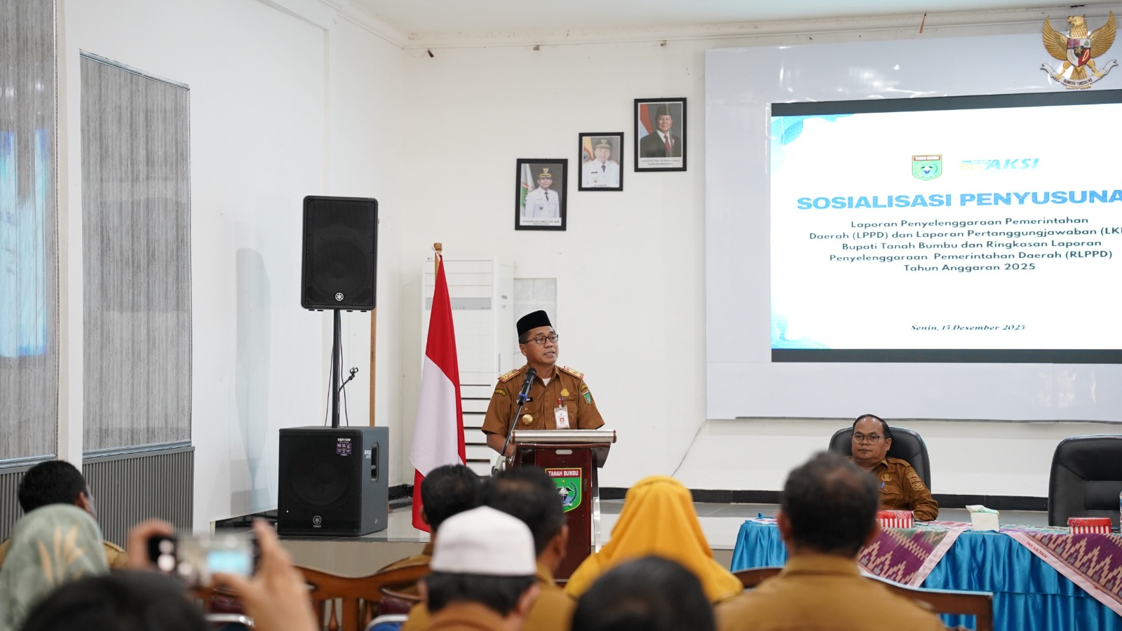 TANAH BUMBU, aktualkalsel.com — Pemerintah Kabupaten Tanah Bumbu (Pemkab Tanbu) menggelar Sosialisasi Penyusunan Laporan Penyelenggaraan Pemerintahan Daerah (LPPD), Laporan Keterangan Pertanggungjawaban (LKPJ) Bupati, serta Ringkasan Laporan Penyelenggaraan Pemerintahan Daerah (RLPPD) Tahun Anggaran 2025, bertempat di Gedung PKK, Kapet, Senin (15/12/2025).