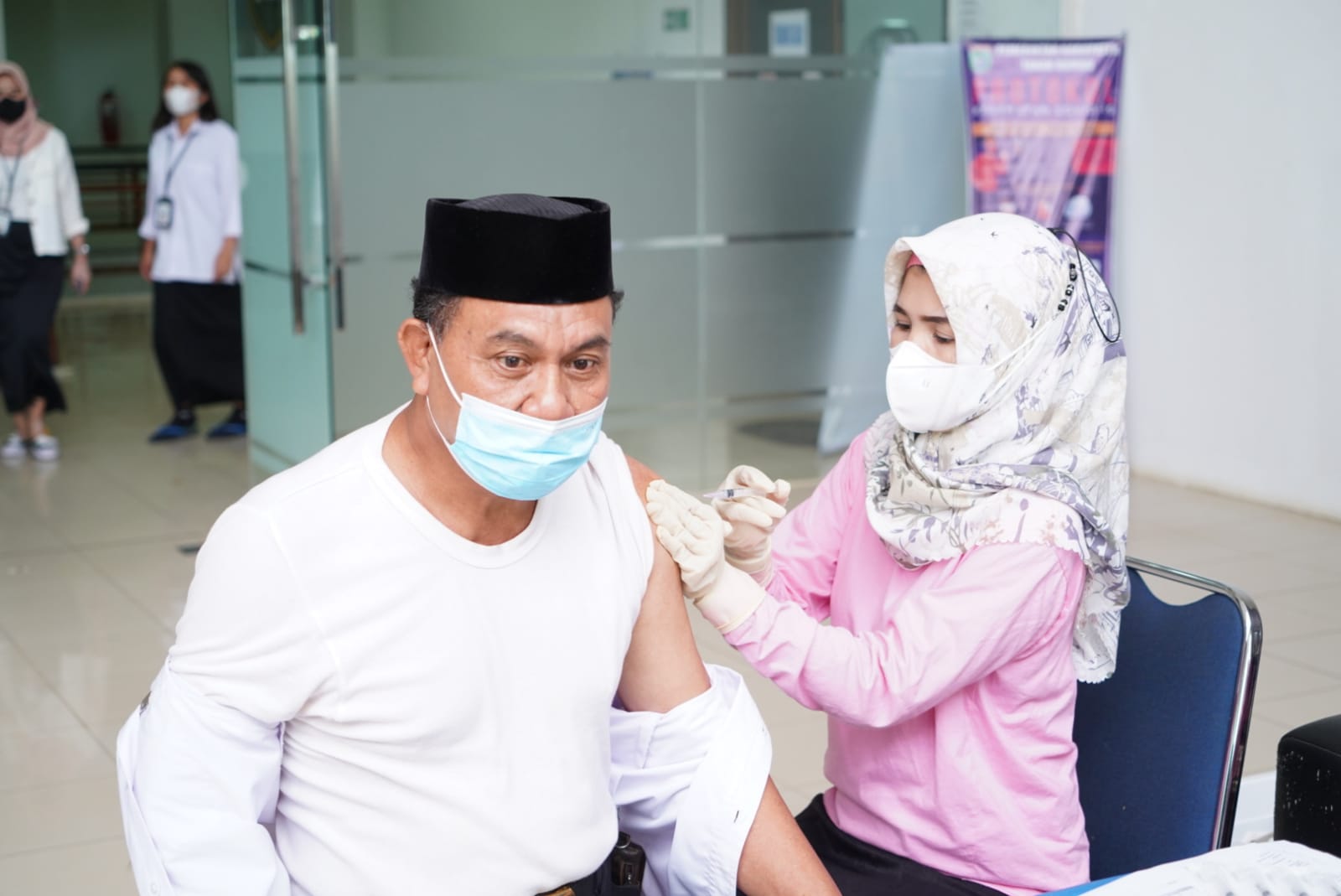 Bupati HM. Zairullah Azhar mengawali pemberian suntik vaksinasi boster tersebut.