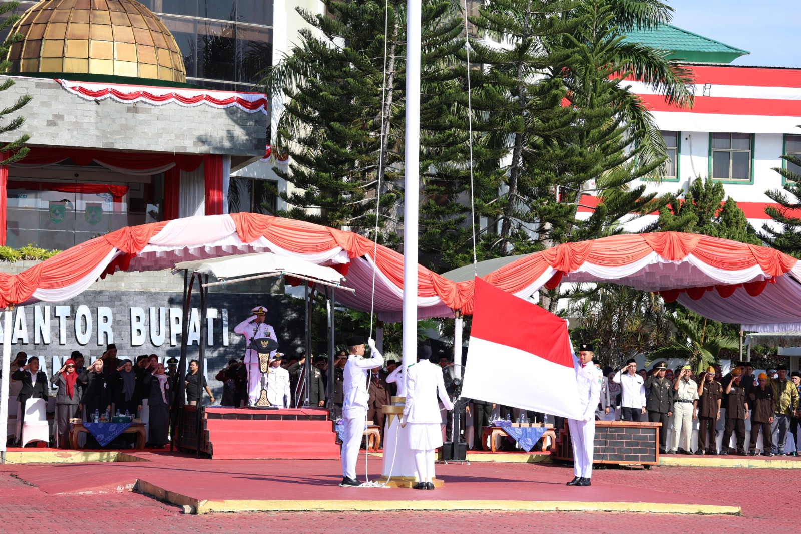 Upacara yang berlangsung di halaman Kantor Bupati Tanah Bumbu ini berjalan dengan khidmat, tertib, dan penuh rasa nasionalisme.