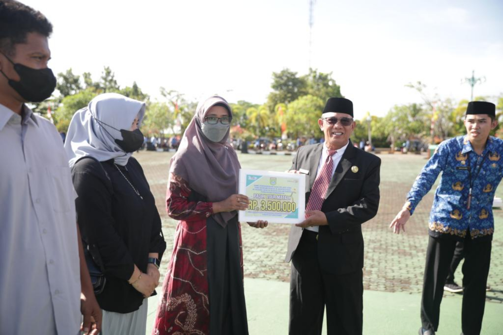 Hadir menyaksikan dalam kegiatan penyerahan Wakil Ketua DPRD Tanah Bumbu, Kapolres Tanbu, Dandim 1022/Tnb, jajaran Kepala Dinas dan staff lingkup Pemkab Tanbu beserta tamu undangan. Edwan