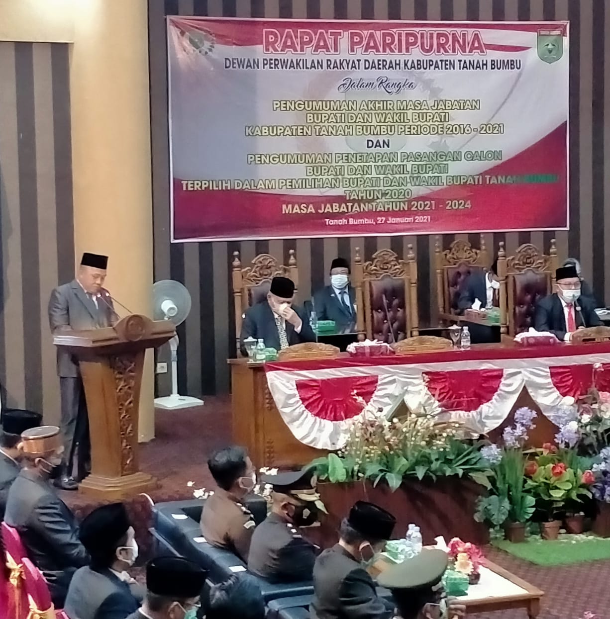 Pada rapat paripurna DPRD Kabupaten Tanah Bumbu yang membahas tentang, pertama pengumuman masa akhir jabatan bupati Kabupaten Tanah Bumbu periode 2016-2021.