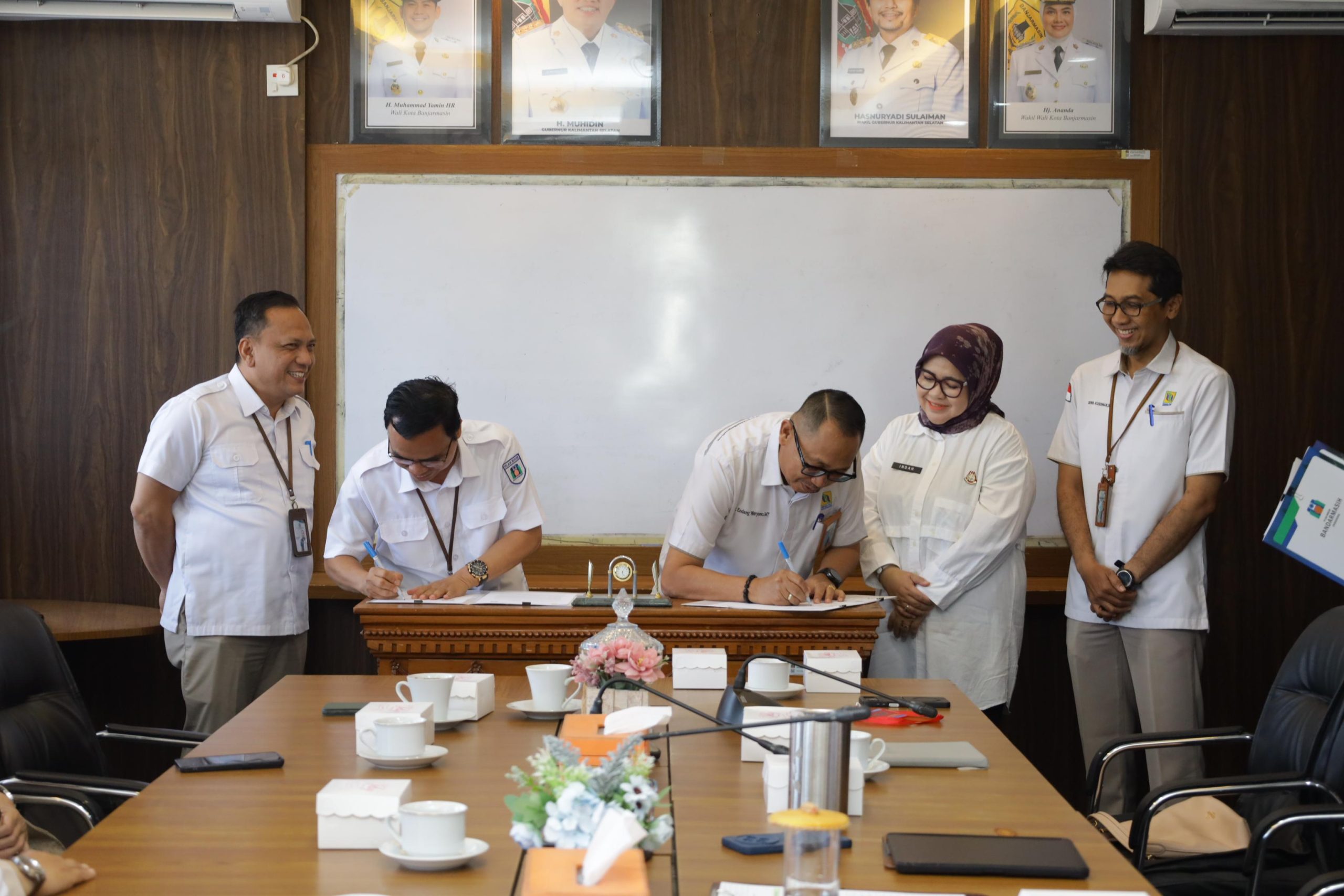 com— PT Air Minum Bandarmasih tanda tangani MoU atau Perjanjian Kerja Sama dengan Perumda PALD, di Ruang Rapat Direktur Utama PT AM Bandarmasih, Rabu (15/10/2025) lalu.